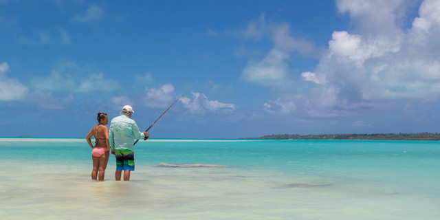 The huge bonefish (Kio Kio) of Aitutaki are a challenge to catch and land. E2’s knowledge of the flats and legendary fish spotting ability helps tip the odds in your favour.
