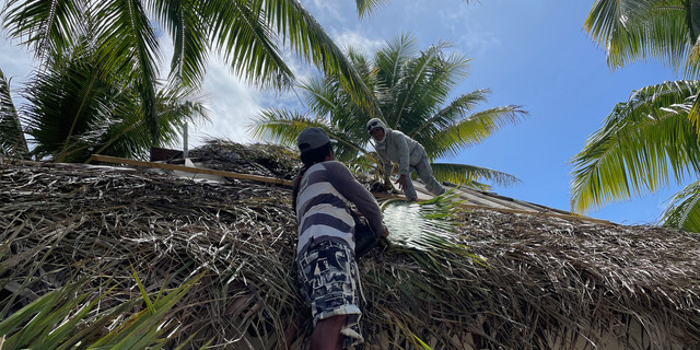Nikau roofing is costly and demanding. Depending on the weather and exposure, each roof must be renewed every three years. Today, the task of finding skilled workers is becoming increasingly difficult.